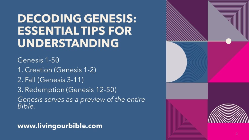 Genesis serves as a preview of the entire Bible. If you understand Genesis, the other books will be easier to comprehend.