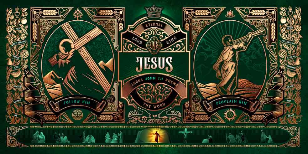 At the heart of the artwork is Jesus Christ. The theme verse for 2025 is John 1:1, which introduces Jesus as the Word of God.