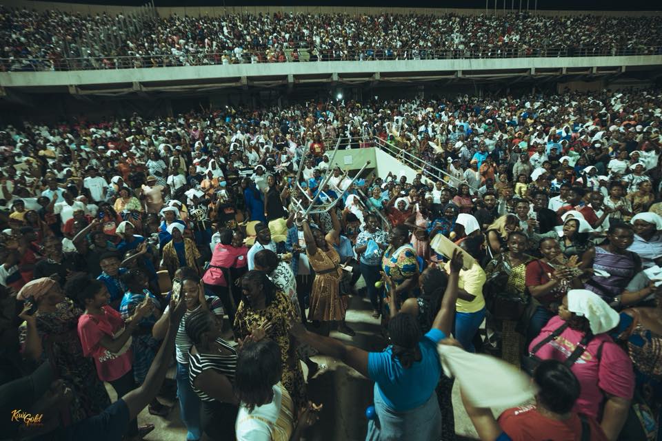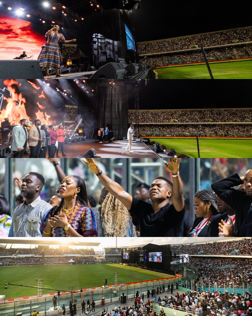The stadium roared with faith as worship leader Minister Sunmisola Agbebi and others led the crowd in songs of victory.